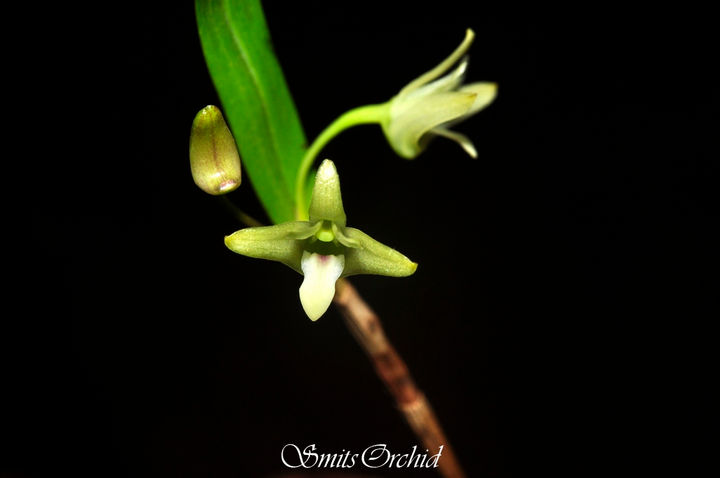 Leaves 3-11 X 0.4-1.3-cm, sessile, sheathing at the. base, caducous, alternate, distichous, linear-oblong or linear lanceolate, acute or subobtuse, entire, glabrous. Inflorescence appearing after leaf fall, short, 2-5 flowered, terminal. Peduncles 7-15 mm long, brownish, slender, glabrous, sheathed at the base; sheaths very small, membranous, oblong, subacute, entire, translucent, glabrous