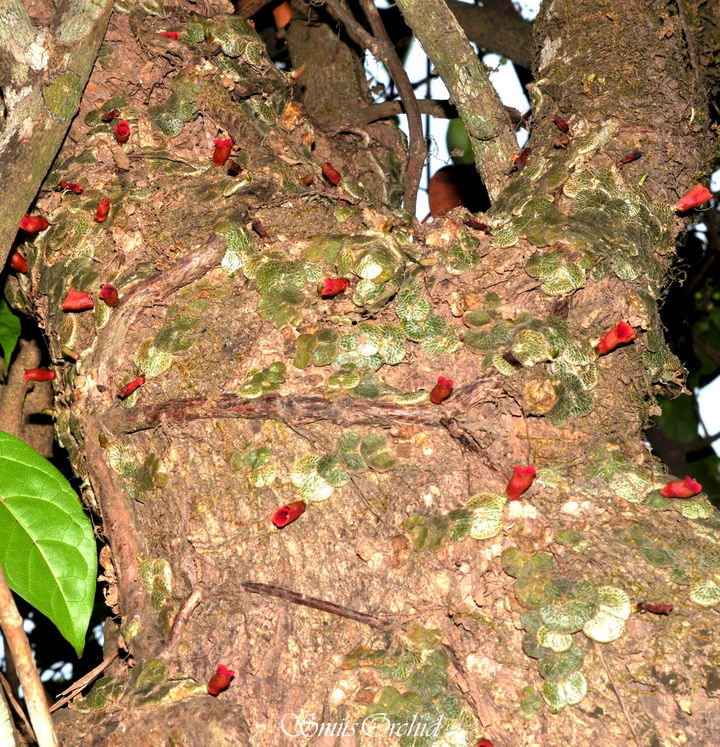 Ecology: Epiphytic orchid found growing on Careya arborea, Memceylon umbellatum, Terminalia billirica & Syzygium sp. in moist evergreen forest